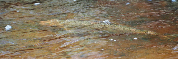 Vi leder er på öringguidning längs ån, där vi hoppas att kunna se leksugna öringar.